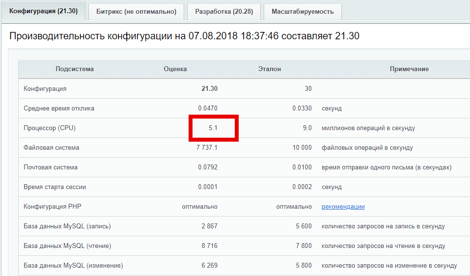 На Убунту тест производительности битрикс показывал на процессоре 200 миллионов операций в секунду, а на новой Centos 7 с Брайни стало только 5 миллионов опеций в сек?
